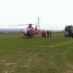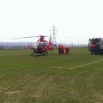 Un bebeluș de 11 luni, din comuna Crușeț, este preluat, în acest moment, de un elicopter SMURD, de pe stadionul din orașul Târgu-Cărbunești, pentru a fi transportat de urgență la Craiova.