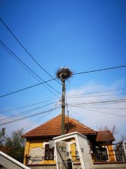 Am primit permisiunea deținătorului stâlpilor să montăm pe acestea cuiburile, primind și ajutor de la o firmă de specialitate deținută de operator.