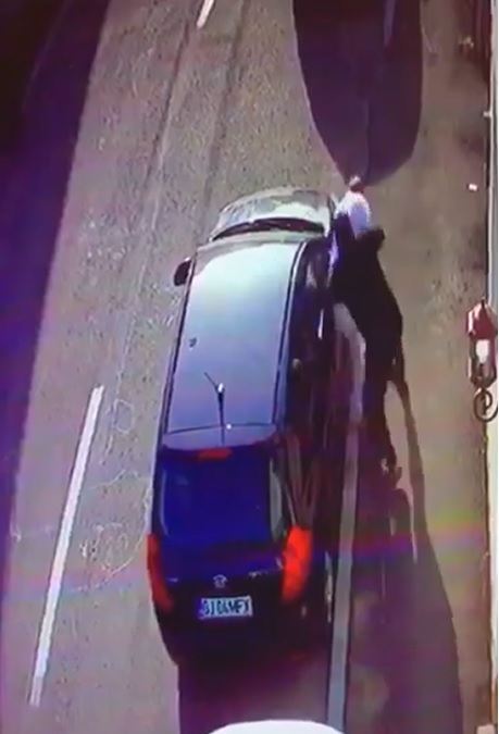 Agresorii sunt încă în libertate, iar fapta a fost surprinsă pe o cameră de luat vederi de la o locuință din zonă.