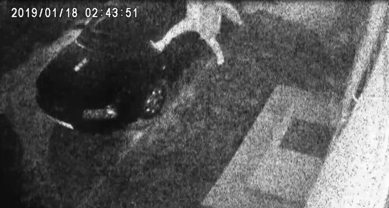 Pe imagini se vede un individ, care sare cu picioarele pe una dintre mașini, dă cu piciorul în geamuri, rupe un ștergător de la una dintre mașini și o lovește cu acesta pe alta, rupe oglinzile, încearcă să deschidă ușa, sare în aceasta cu picioarele, dar cade pe spate și încearcă să desfacă capota, dar fără succes.