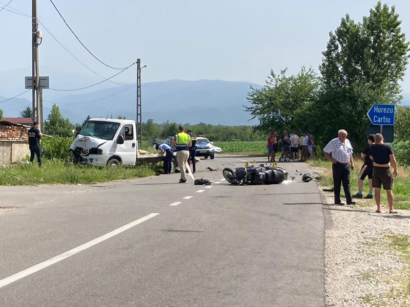 „La faţa locului s-au deplasat polițiști din cadrul Poliției Orașului Bumbești Jiu, Postului de Poliție Schela cât și un echipaj din cadrul Serviciului Rutier, care, din primele verificări au constatat că, un bărbat de 30 de ani, din Comuna Schela, în timp ce se deplasa pe DJ 664 Cartiu, cu o autoutilitară, din direcția comunei Schela către Turcinești, într-o curbă deosebit de periculoasă la dreapta, ar fi pătruns pe contrasens și ar fi intrat în coliziune cu un motociclu, condus de un bărbat de 59 de ani, cetățean de origine cehă, din orașul Olomouc, Republica Cehă, care se deplasa din direcția Turcinești către Schela. În urma evenimentului a rezultat decesul conducătorului motociclului. Conducătorul autoutilitarei a fost testat cu aparatul etilotest, rezultatul fiind negativ, fiind condus la spital în vederea recoltării de probe biologice de sânge. În cauză s-a întocmit dosar penal sub aspectul săvârşirii infracţiunii de ucidere din culpă”, a transmis Miruna Prejbeanu, purtătorul de cuvânt al IPJ Gorj. Trupul neînsuflețit al cetățeanului ceh a fost ridicat și transportat la Serviciul de Medicină Legală Gorj, unde medicii legiști vor stabili cauzele exacte ale decesului. Pe parcursul cercetărilor derulate la fața locului de către polițiști, circulația rutieră a fost întreruptă complet, șoferii aflați în tranzit fiind nevoiți să își lase mașinile acolo și să revină mai târziu să le ridice ori să facă drum întors și să ocolească pe alte rute pentru a-și putea continua deplasarea. „Stau în capul satului și nu mă apuc să fac un ditamai ocolul. Las mașina aici și vin mai târziu să o iau că nu mă grăbesc. N-am nimic în ea care să se strice pe căldurile astea. Sunt alții care s-au întors din drum și au luat-o pe altă parte, că merg către Schela, dar la mine nu e cazul”, a spus șoferul unei mașini oprite la locul producerii accidentului.