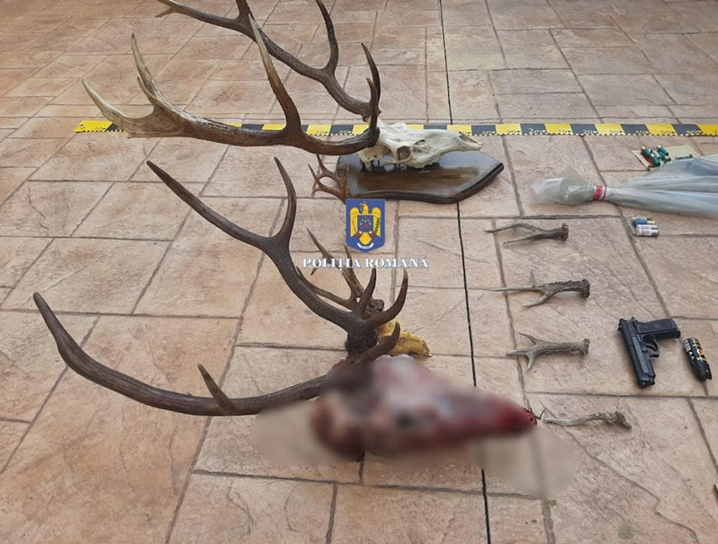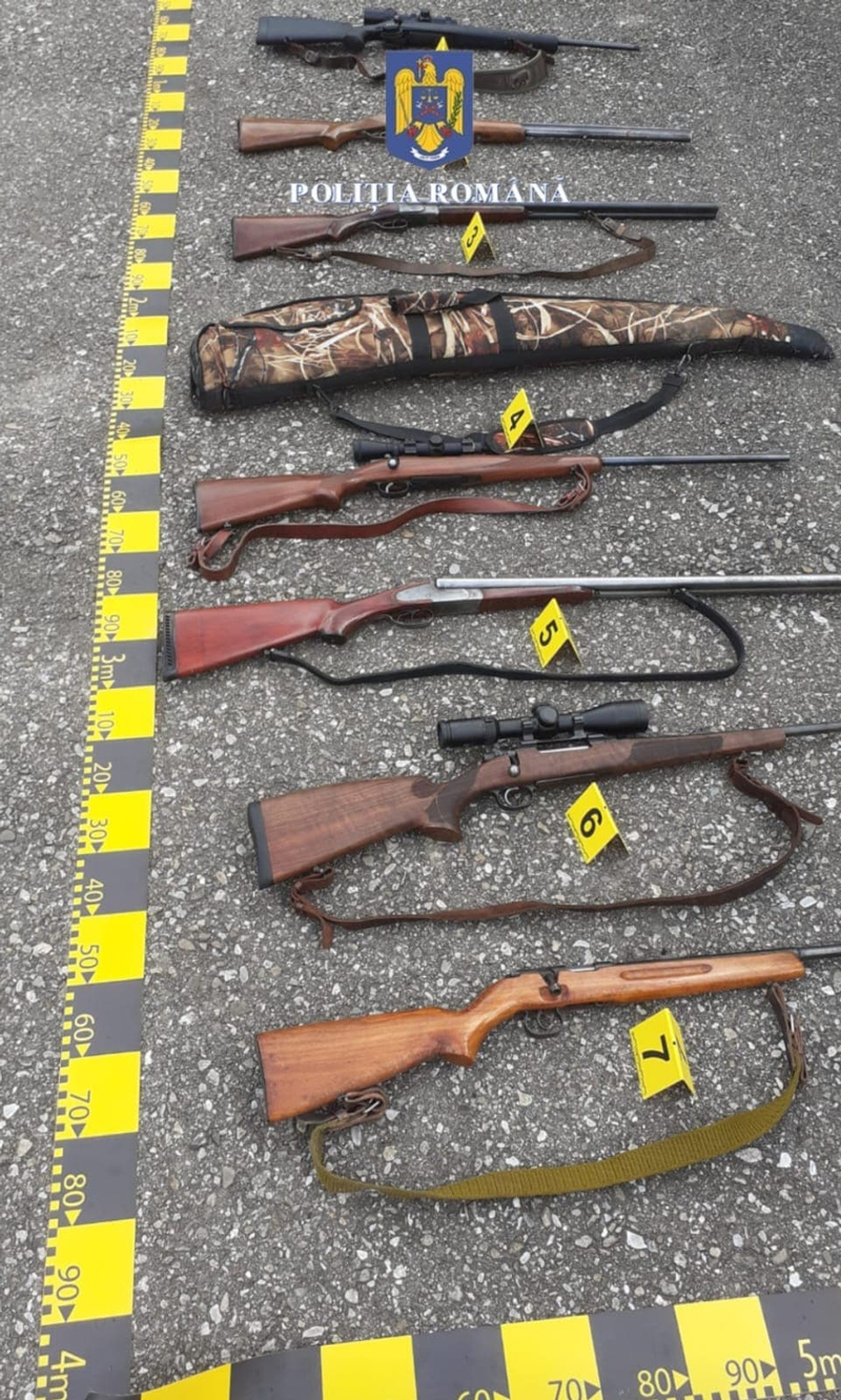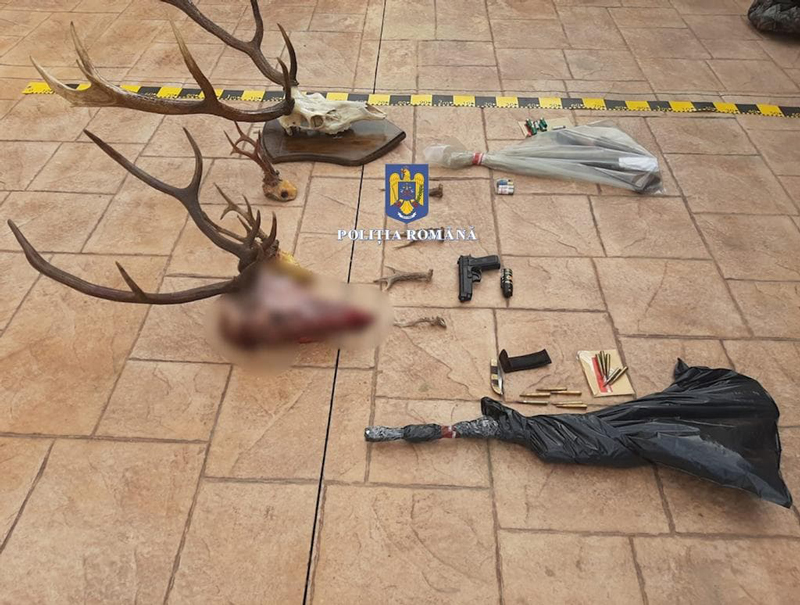 * Au fost ridicate opt arme de vânătoare, deținute legal, un amortizor de sunet, un dispozitiv de vedere pe timp de noapte, 585 de cartușe de vânătoare, 280 de kilograme de carne de vânat, 8 trofee de cervide, 3 topoare și 4.300 de țigarete, deținute în afara unui antrepozit fiscal, fără a avea timbru de marcaj fiscal.