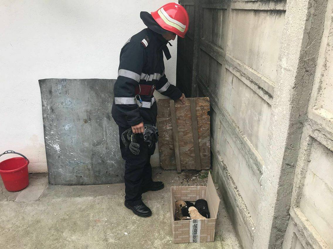 Locatarii unui bloc de pe strada Unirii, din Târgu-Jiu, au chemat pompierii ca să scoată o cățea cu pui dintr-o groapă. Oamenii au folosit tranchilizant pentru a adormi cățeaua, în timpul operațiunii, întrucât este agresivă.