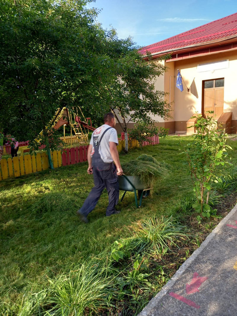 Mai exact, pentru că autoritatea locală nu s-a implicat să taie iarba în curtea grădiniței, părinții au pus ei mâna și au făcut asta. Mai mult, aparținătorii preșcolarilor nu s-au oprit