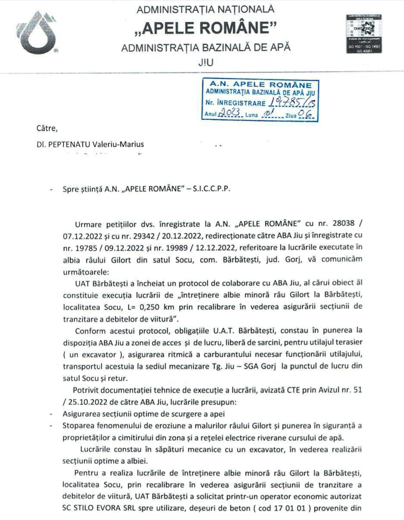 Cert este că Apele Române au decis că Primăria Bărbătești, pe cheltuiala proprie, să