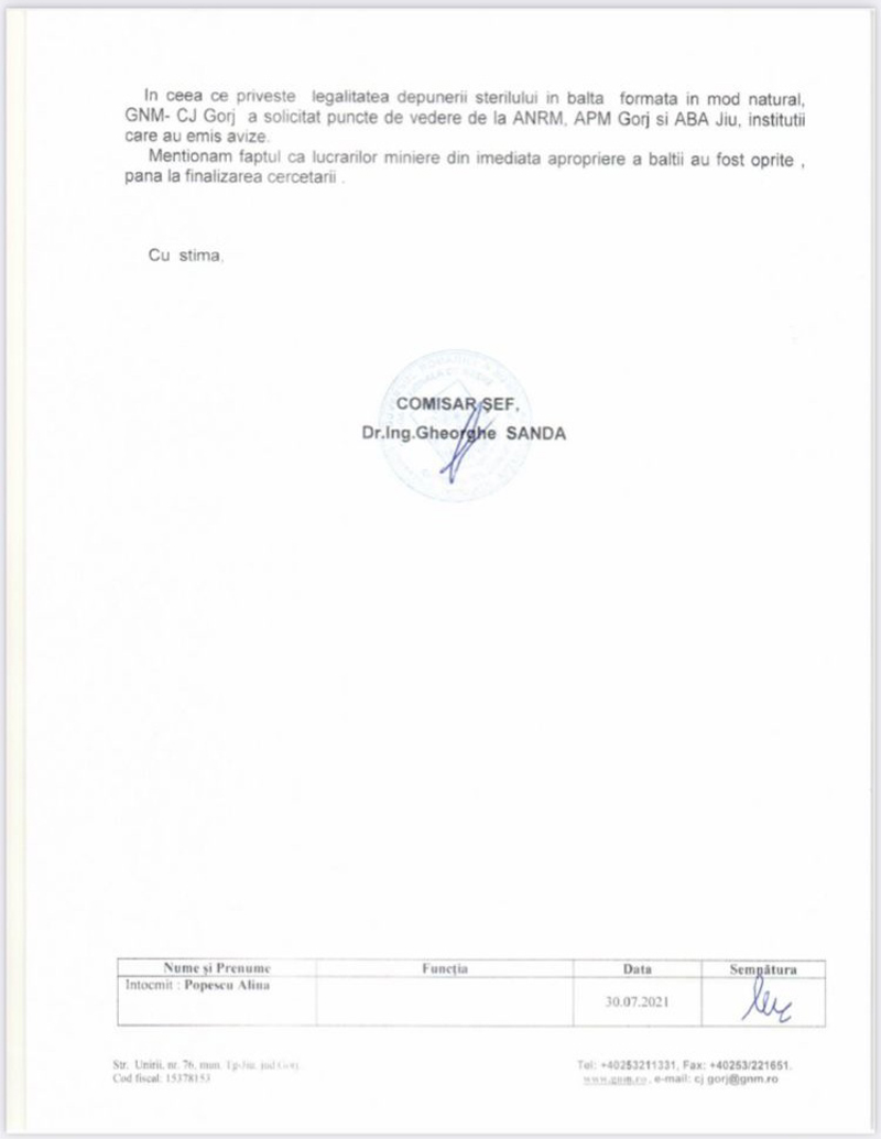 Demersul nu are niciun efect, primăria, prin primarul Bucurescu, încurajând exploatarea și haldarea sterilului în lac. De altfel, primarul are o ieșire publică în care explică faptul că lacul este doar ”o groapă” care trebuie astupată deoarece și anterior lacul a fost creat de mâna omului.