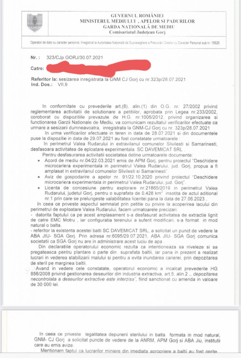 Lucrările de la Lacul Zăstrana, efectuate de către SC DAVEMICAT SRL, firma omului de afaceri Ion C. Davițoiu, nașul afaceristului Carlaonț Silviu, cel care deține SC MANINTER CAR și SC EXPLO CARB SRL, au fost oprite, cu trei săptămâni în urmă, după ce comisarii de la Garda de Mediu Gorj au văzut, la fața locului, că luciul de apă era acoperit cu cantități mari de steril, rezultate din lucrările de exploatare de la cariera privată din zona Slivilești, localitatea Miculești. Firma afaceristului Davițoiu a fost amendată atunci cu 30.000 de lei, iar lucrările stopate, acestea fiind realizate cu utilaje de la una dintre firmele finului Carlaonț. Chiar dacă lacul, preferat de pescarii din zonă, a fost salvat deocamdată, oamenii se tem că interesele acestor afaceriști și banii pe care îi aruncă, cu lejeritate, în piață, vor redeschide lucrările, lucru confirmat, într-o adresă oficială, și de către reprezentanții Gărzii de Mediu, care confirmă că aceste proceduri poluante sunt stopate doar până când firma va intra în legalitate.