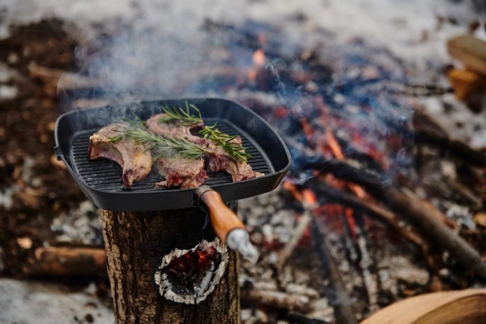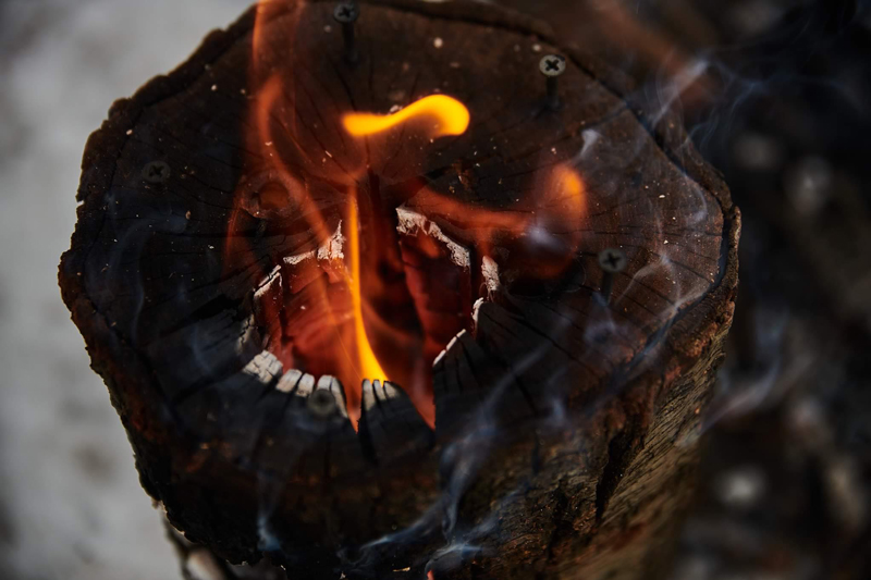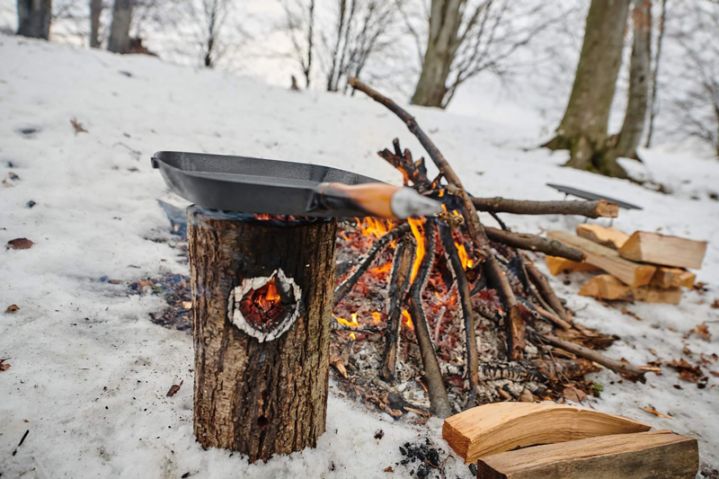 Focul aprins într-un chituc de lemn este o tehnică veche de a gătit.