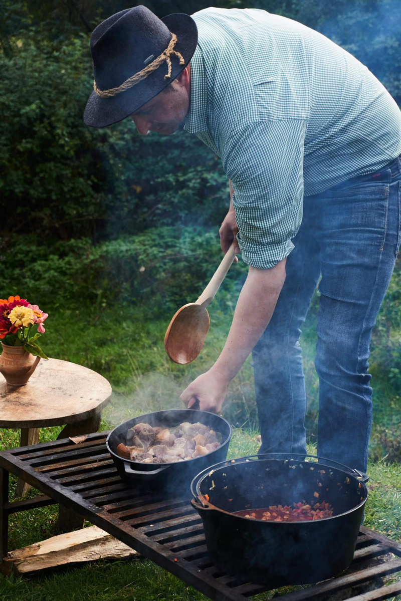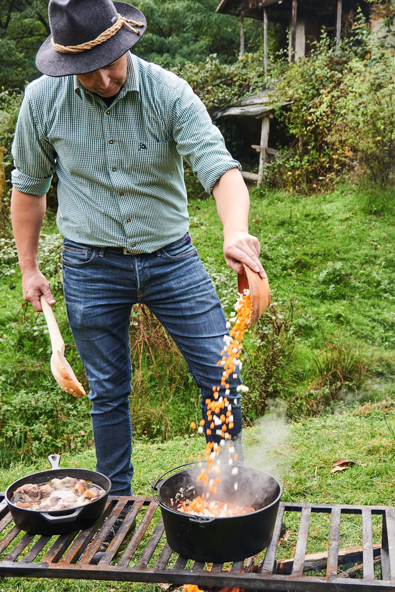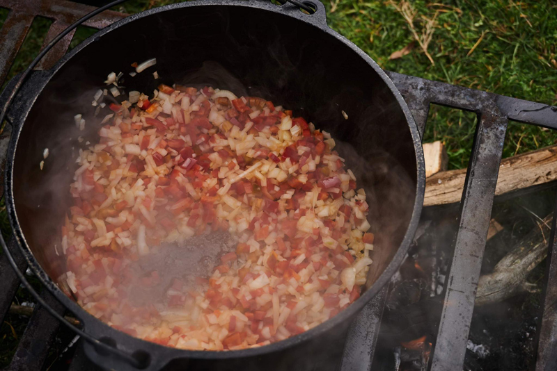 Am mai fiert totul în ceaun, pentru 20 de minute. Între timp, din câteva lemne lungi am pregătit un foc mic de tabără.