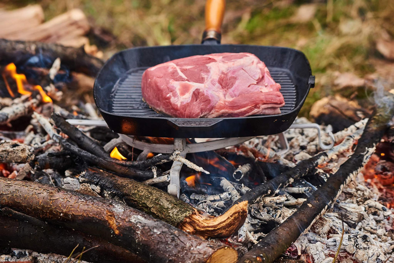 Când vatra s-a încins, într-o tigaie adăugăm puțin ulei. Eu am folosit o tigaie din fontă tip gril.