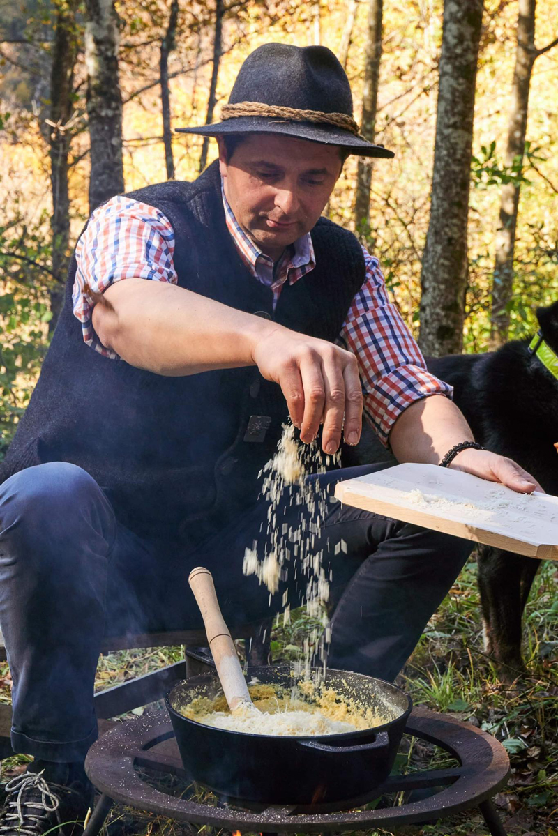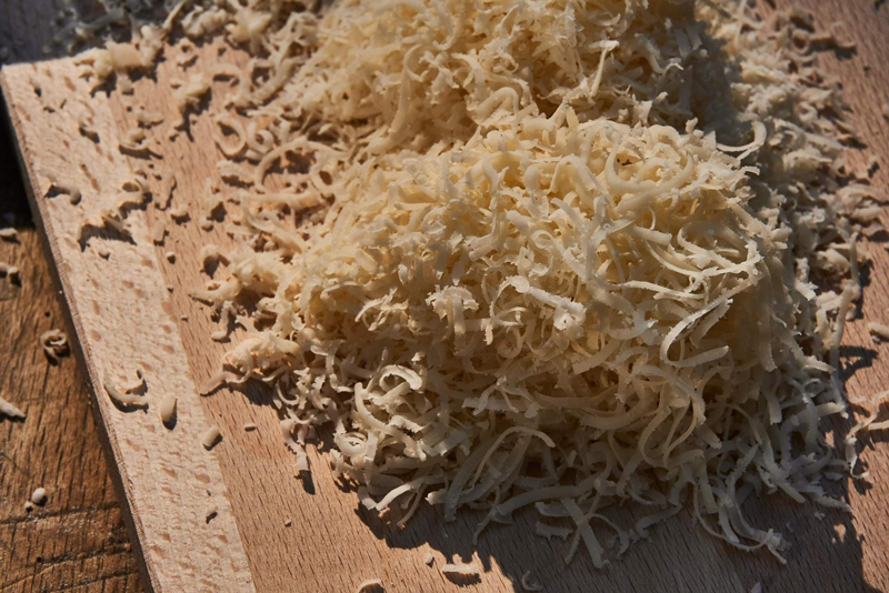 Am ras parmezanul tot pe răzătoarea fină, apoi l-am adăugat peste mămăliga deja formată.