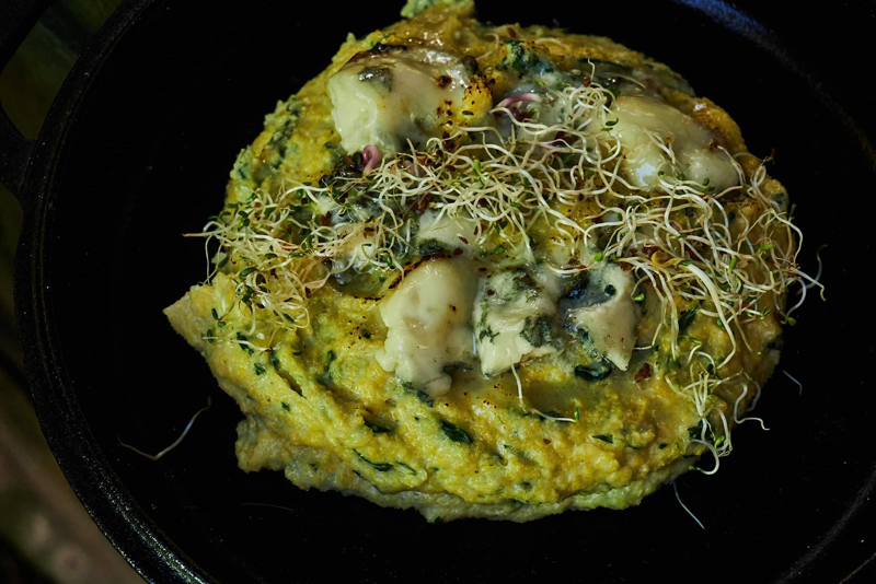 La final, am format porțiile de mămăligă, am adăugat brânză roquefort pe care am topit-o puțin la flacără.