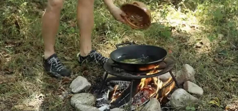 Cu degetul mare formăm gaura care este specifică papanașilor. Eu am prăjit papanașii pe foc cu lemne, într-o tigaie Wok de fontă. Adăugăm uleiul și așteptăm până se încălzește.