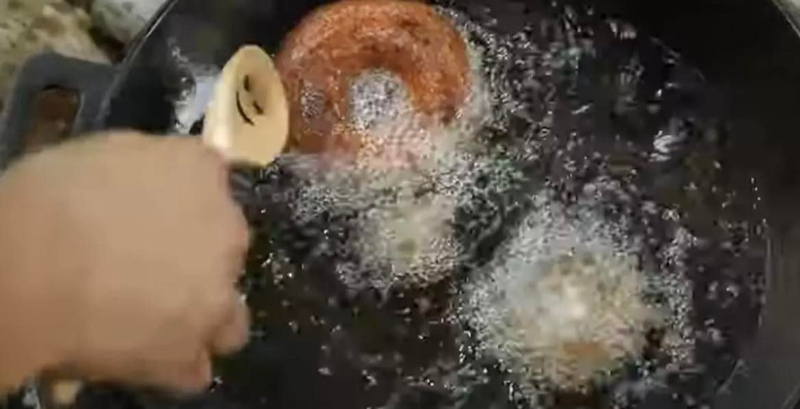 Ca să verificăm dacă uleiul s-a încălzit, introducem coada de la lingura de lemn iar, dacă face uleiul bule, este numai bun de prăjit.