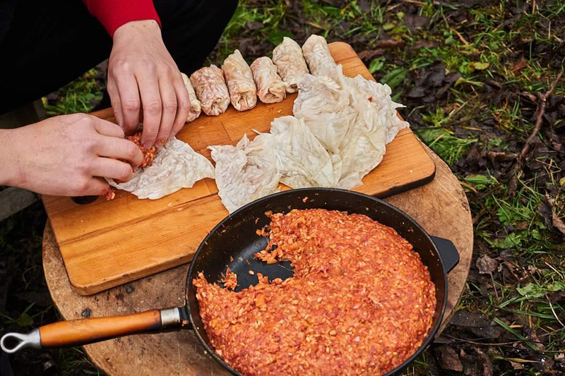 Așa că nu ezitați să vă surprindeți invitații în noaptea dintre ani cu un foc de tabără și o oală de sarmale fierte încet, însoțite de o țuică fiartă.