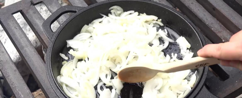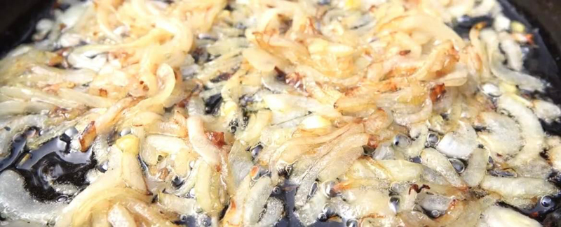 Tăiem ceapa fideluță sau juliene după care o prăjim într-o tigaie de culoarea aurie.