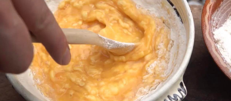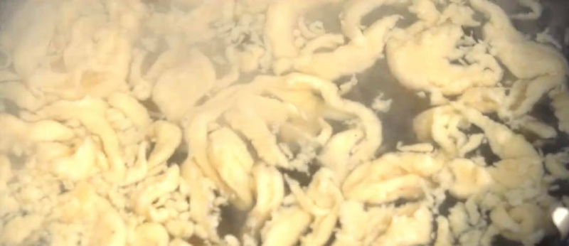 Cu o paletă mică de tip șpaclu sau cu o lingură, rupem din aluat și adăugăm în apa care fierbe.