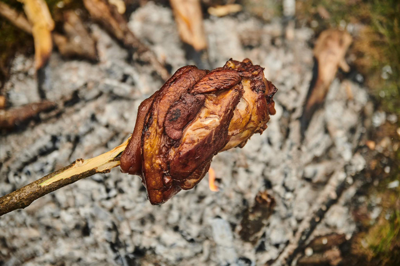 Când ciolanul este fiert, îl scoatem și tăiem puțin șoricul, apoi îl prăjim lângă foc în așa fel încât să se formeze o crustă crocantă.