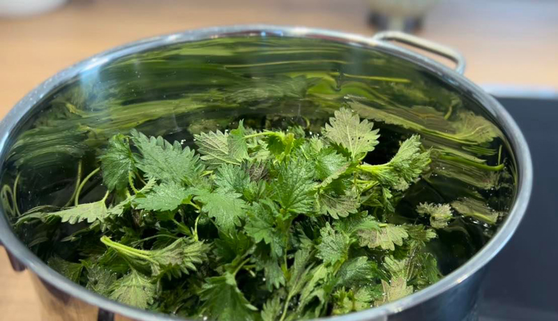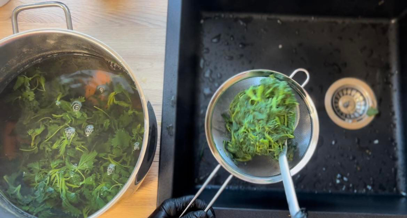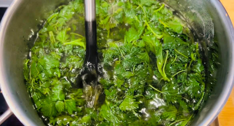 Lăsăm urzicile să dea un clocot, mai exact până când frunzele s-au înmuiat.