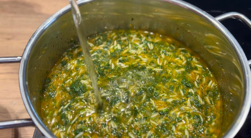 Dacă mai este nevoie putem să completăm cu puțină apă. Lăsăm totul să fiarbă, la foc mic, până când orezul s-a fiert. Adăugăm sare după gust. Eu am servit ciorba de urzici cu hrean și câteva picături de oțet de mere.