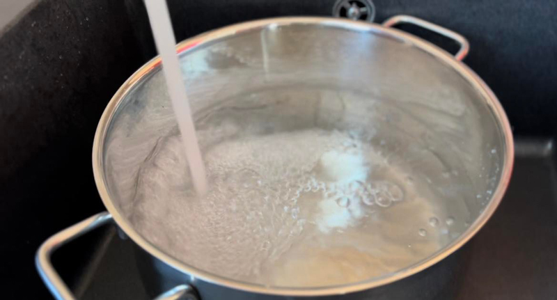 Punem apa într-o oală, adăugăm un vârf de cuțit de sare iar0 când apa fierbe adăugăm urzicile.