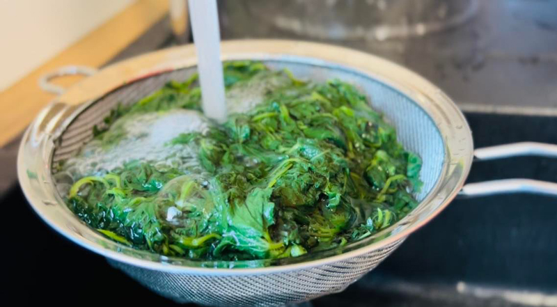 După ce urzicile au dat un clocot le scurgem și le punem puțin sub jet de apă rece.
