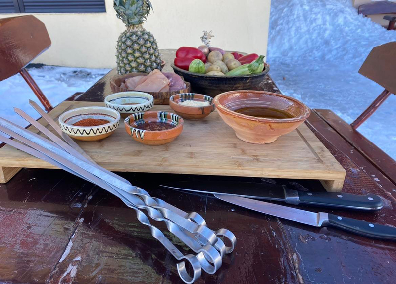 Recomandarea mea ar fi să se lase câteva ore la odihnit. Eu am folosit pentru frigărui sulițe de inox de 50 cm lungime. Ordinea în care am aranjat eu frigăruile este: carne, dovlecel, ceapă, carne, ardei, ananas, cartofi, sau se pot aranja după gustul fiecăruia.