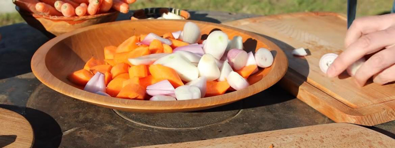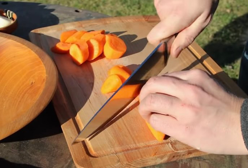 Tăiem morcovii, şaloţa și baconul în bucăţi mari sau fiecare după cum doreşte.
