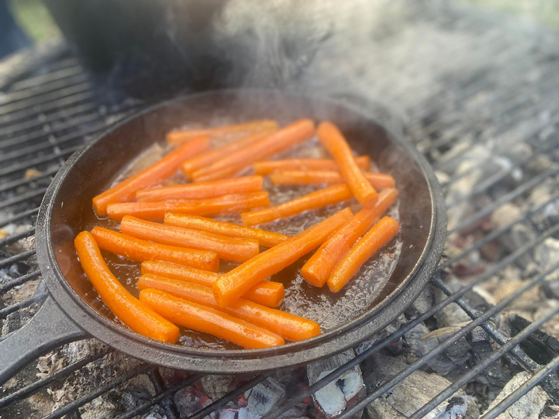 Curăţăm morcovii după care îi prăjim în unt până obţinem culoarea aurie.