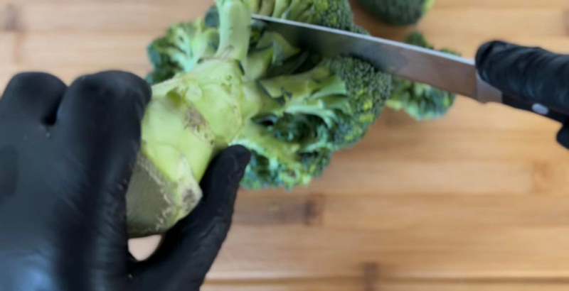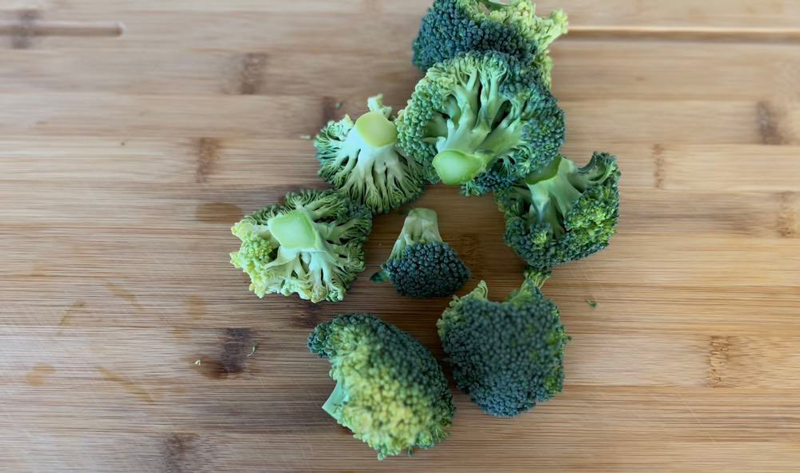 Spălăm broccoli și îi tăiem florile cu un cuțit în părți mici.