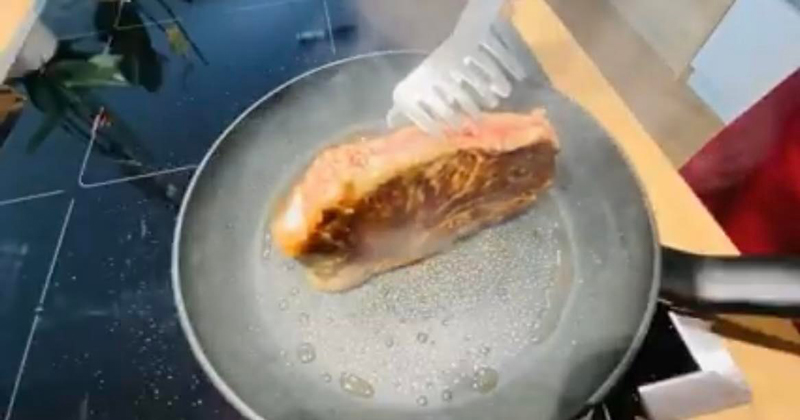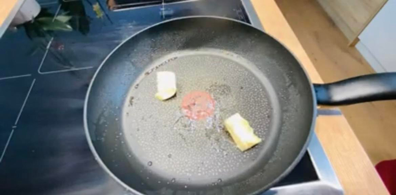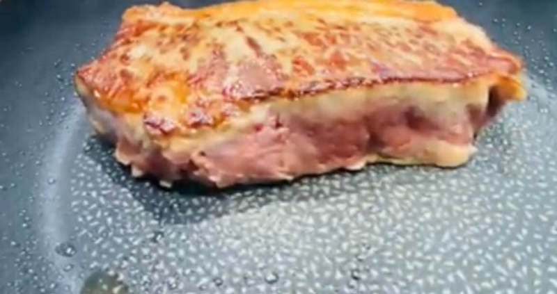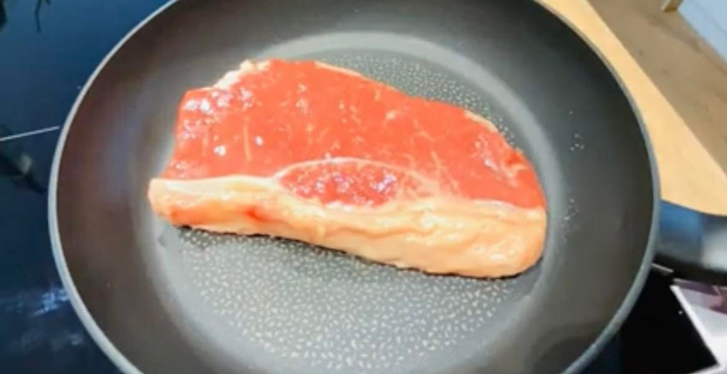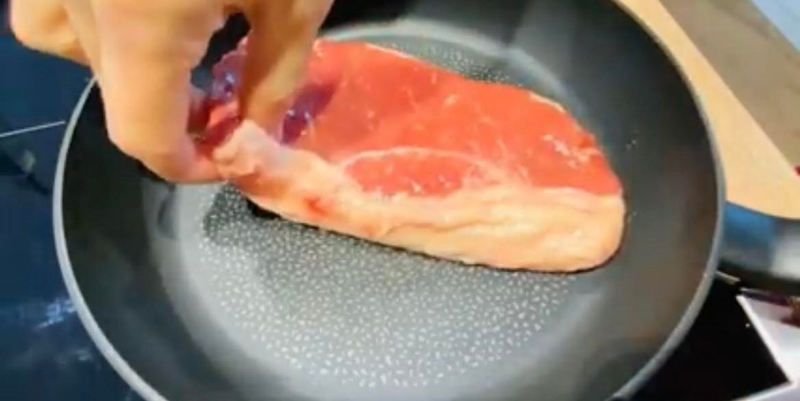 Încălzim puternic o tigaie, apoi prăjim friptura pe ambele părţi timp de aproximativ 3 minute.