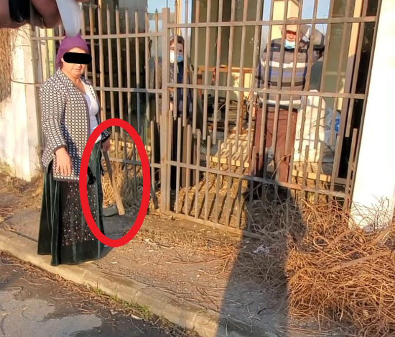 Aceștia au început să înjure, să amenințe și au ieșit cu parii să-și apere terenul care nu le mai aparținea. Spiritele s-au calmat, oarecum, în sensul că au dispărut parii, doar în momentul în care Paul Crețan a sunat la poliție, însă amenințările au continuat. ,,O să plătești tu cu viața. Dă-o în p…mea de poliție. Mă, îți zbor creierii din cap. O să vin eu la tine în casă, mă. …explozie în casa ta”, sunt cuvintele lui Toma Mihai Cioabă, în timp ce aștepta poliția cu o mătură în mână. La fața locului a ajuns un polițist de la Poliția Municipiului Târgu-Jiu și un polițist local, iar când proprietarul terenului a încărcat într-o mașină câteva geamuri, de la o hală aflată pe acesta, cei din familia de romi au repornit scandalul. Pe imaginile surprinse cu telefonul mobil se poate observa cum o femeie din familia de romi încearcă să se urce în mașină, iar Mihai Toma Ciobă încearcă să spargă geamurile uriașe.