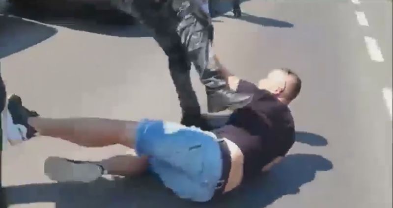 VIDEO: Unul dintre agresorii care au bătut un om de afaceri cu ranga, pe o stradă din Târgu-Jiu, ridicat de polițiști din trafic