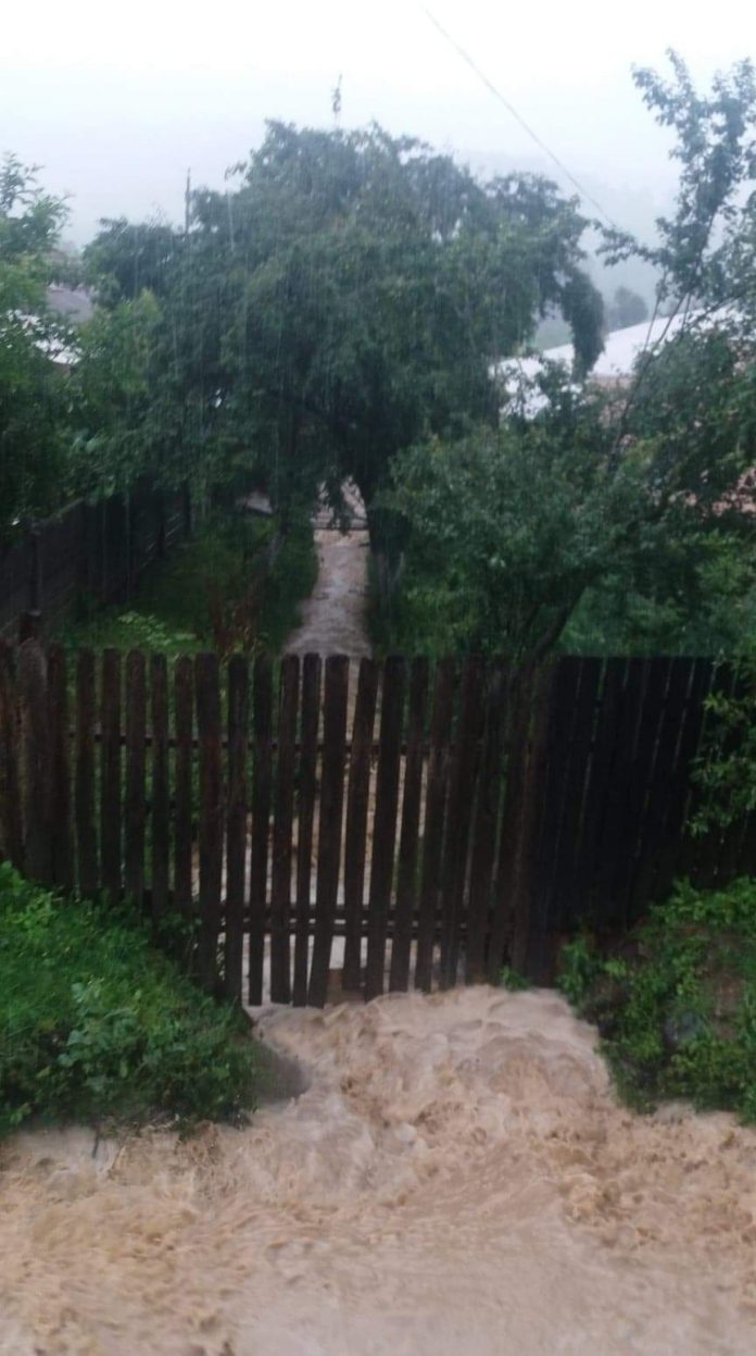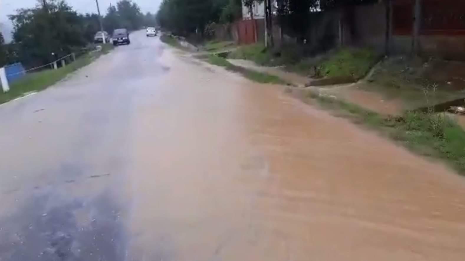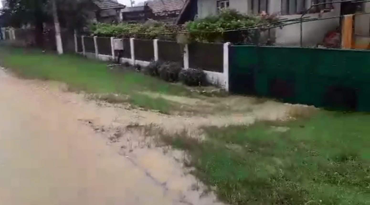 De asemenea, de pe drumul principal, apa adunată din ploi s-a revărsat în mai multe curți.