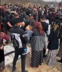 Peste o sută de persoane au intrat în cimitir pentru a-l conduce pe tânărul decedat pe ultimul drum, neputând fi opriți să facă asta.