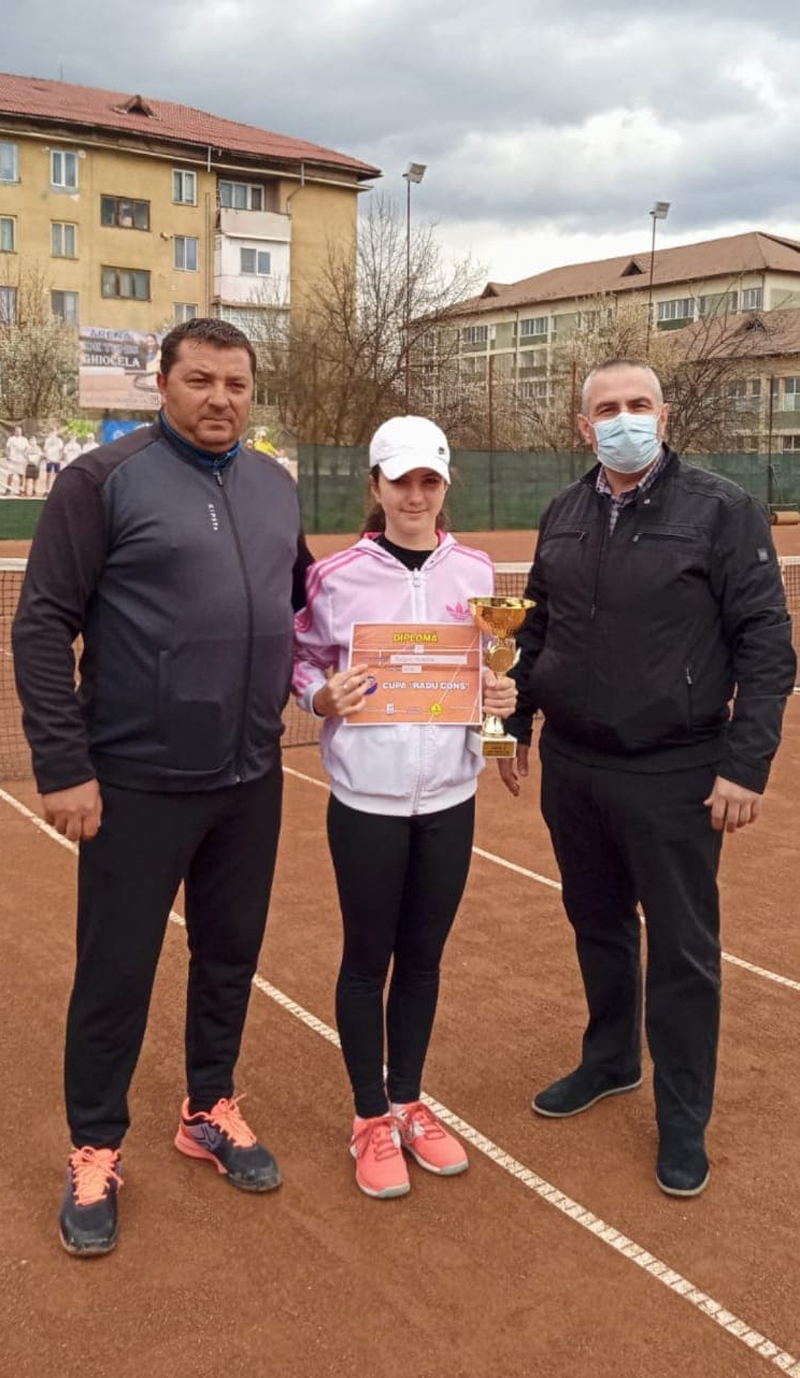 Primarul i-a oferit sportivei un buchet impresionat de flori, chiar pe terenul de tenis, dar și o icoană sfințită de un înalt prelat, totul pentru eforturile și rezultatele sportive obținute.