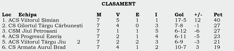 Viitorul 2 Târgu Jiu și Gilortul Târgu Cărbunești se întâlnesc, astăzi, de la ora 18.00, într-un meci care contează pentru etapa a opta a play-out-ului Seriei B din Liga 3. Gazdele au primit un ajutor important de la echipa mare, iar antrenorul Costel Andriucă are încredere că trupa sa poate obține al doilea succes consecutiv în fața Gilortului. Satelitul echipei de ligă secundă nu-și permite pași greșiți în ultimele etape dacă vrea să rămână în eșalonul terț. ,,Vă dați seamă că după meciul de la Ezeriș, pe care l-am câștigat cu 3-2, ne trebuie și acum o victorie ca să putem să mergem mai departe și să ne îndeplinim obiectivul: salvarea de la retrogradare. Avem 6-7 jucători de la echipa mare, care s-au pregătit cu noi la satelit. Avem speranțe că ne putem salva, ținând cont că jucăm acasă cu Gilortul și cu Bradul, iar în ultima rundă ieșim la Șimian. În mod normal, favoriți ne vedem noi, pentru că ne dorim să câștigăm. Avem meci acasă, pe teren propriu, deci ar trebui să fim favorită chiar dacă Gilortul este pe locul 2. După clasament, ei ar fi favoriți, dar ținând cont că noi avem și jucători de la echipa mare, ar trebuie să plecăm cu prima șansă”, a spus Andriucă. Tehnicianul gorjean vrea victorii și în următoarele două runde, în ciuda faptului că are o echipă necoaptă. ,,Copiii sunt încă tineri, jucăm cu fotbaliști născuți în 2004, 2005 și 2006. Avem doar 4 jucători mai experimentați. Echipa venea după două înfrângeri când am preluat-o, iar acum avem două succese, două egaluri și o înfrângere. Sperăm să ne salvăm, este singurul obiectiv. Nu vreau, în primul rând, o retrogradare pentru mine și nu vreau o retrogradare pentru club, pentru că, până la urmă, este imaginea clubului în joc”, a mai spus principalul Viitorului. De cealaltă parte, antrenorul Alex Stoica este de părere că vizitatorii pornesc cu un ușor dezavantaj în acest meci, dar trebuie să fie echipa mai pragmatică pentru a câștiga. În ultima întâlnire directă, Gilortul a cedat cu 0-2. ,,E clar că Viitorul 2 pleacă cu prima șansă, pentru că o să aibă în componență și jucători de la prima echipă, dar noi o să mergem să obținem un rezultat bun, pentru a ne salva și matematic de la retrogradare. Din punctul meu de vedere, și în meciul trecut am dominat prima repriză și am fi meritat să înscriem. Din păcate, a doua repriză nu a mai fost la fel de consistentă și din această cauză am pierdut jocul. De data aceasta, sperăm să fim mai atenți, mai echilibrați, și să obținem un rezultat bun. Așteptăm ultimul antrenament și vom vedea pe ce jucători nu ne putem baza. Există două incertitudini, dar nu putem știi cu exactitate până la ora jocului. Avem un program dificil până la finalul campionatului, dar atunci când te bați pentru a te salva de la retrogradare, toate meciurile sunt cu miză și presiune”, a declarat tehnicianul Gilortului.