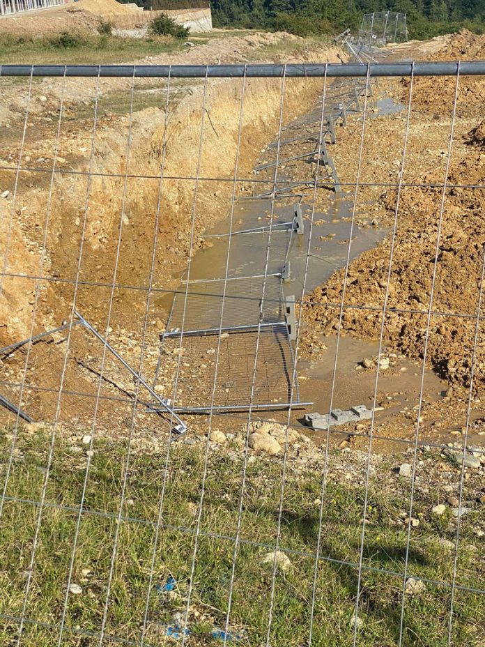 În ceea ce privește sala de sport, dezastrul și dezinteresul se văd cu ochiul liber. Mai exact, din prea multă nepăsare, gardul de la organizarea de șantier a căzut și nimeni nu îl ridică, asta deoarece constructorul nu are de gând să lucreze în vara aceasta, ci abia spre iarnă, probabil, când lucrările ar trebui oprite din cauza vremii nefavorabile.