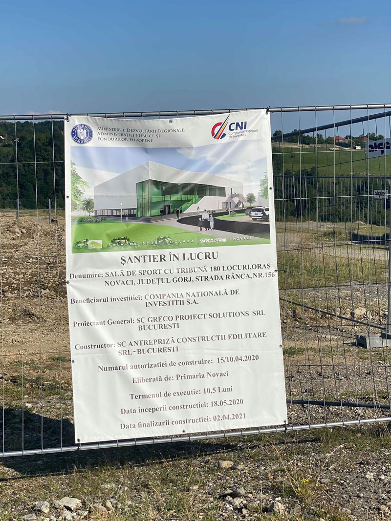 Administrația locală din orașul Novaci a zorit începerea, în plină precampanie electorală, a lucrării la noua sală de sport din localitate, finanțată de CNI. Lucrările se desfășoară atât de bine încât și gardul de la organizarea de șantier a căzut și nimeni nu ridică de acolo. Cu toate acestea, viitoarea sală de sport apare în proiectul de candidat al primarului liberal Leuștean.