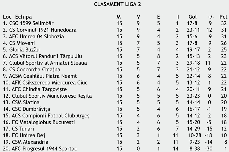 Viitorul revine la Târgu Jiu în etapa a 16-a a ligii secunde, atunci când va înfrunta liderul campionatului, CSC Şelimbăr. Meciul de pe Stadionul ,,Constantina Diță”, programat duminică, la ora 17.00, marchează întoarcerea echipei patronate de Nicolae Sarcină în orașul lui Brâncuși. Au fost trei partide la rând pe care Viitorul le-a disputat la Severin, iar ultimul meci de verificare al gorjenilor a fost jucat pe Stadionul ,,Minerul” din Motru.
