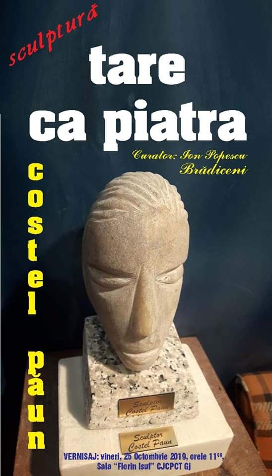 Centrul Județean pentru Conservarea și Promovarea Culturii Tradiționale Gorj vă invită vineri, 25 octombrie 2019, începând cu ora 11.00, la vernisarea expoziției „Tare ca piatra”.