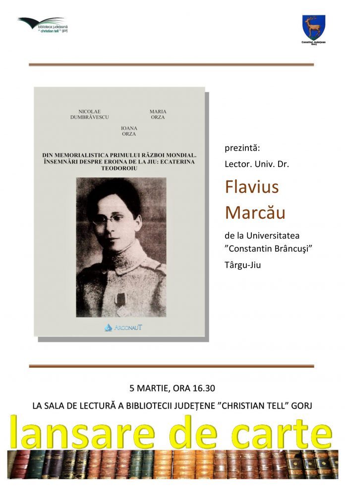 Volum dedicat Ecaterinei Teodoroiu, lansat mâine, la Târgu-Jiu