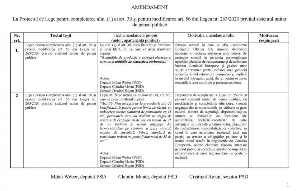 Prin urmare, articolul de lege care menționa că pot fi pensionați mai devreme salariații din „unitățile de producție a energiei electrice și termice“ este completat cu „și unitățile de extracție a cărbunelui“.