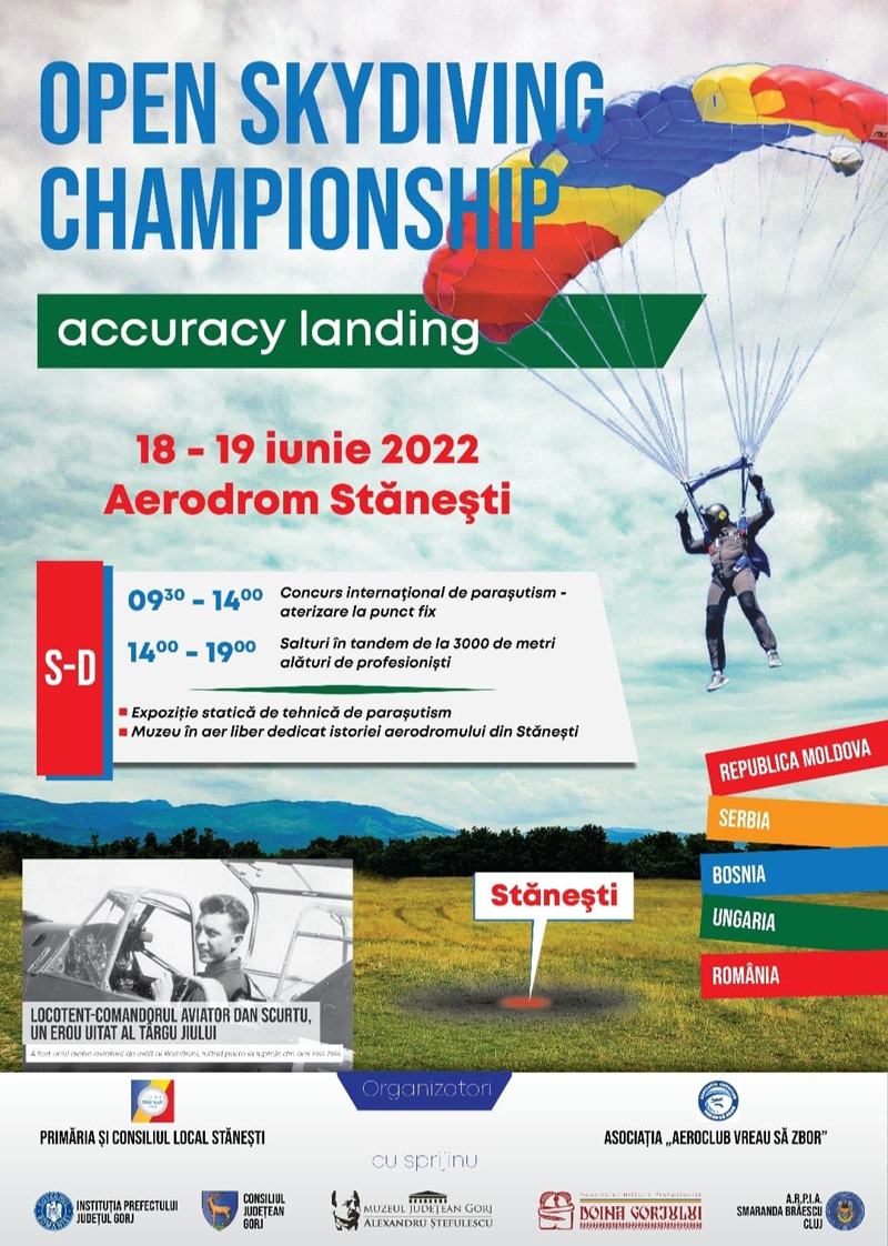 În perioada 18-19 iunie, mai exact sâmbătă și duminică la acest sfârșit de săptămână, la Stănești se organizează un eveniment inedit. Este vorba despre un concurs internațional de parașutism cu aterizare în punct fix, la care vor concura în jur de 30 de parașutiști experimentați. Concurenții sunt din Republica Moldova, Serbia, Bosnia, Ungaria și România.