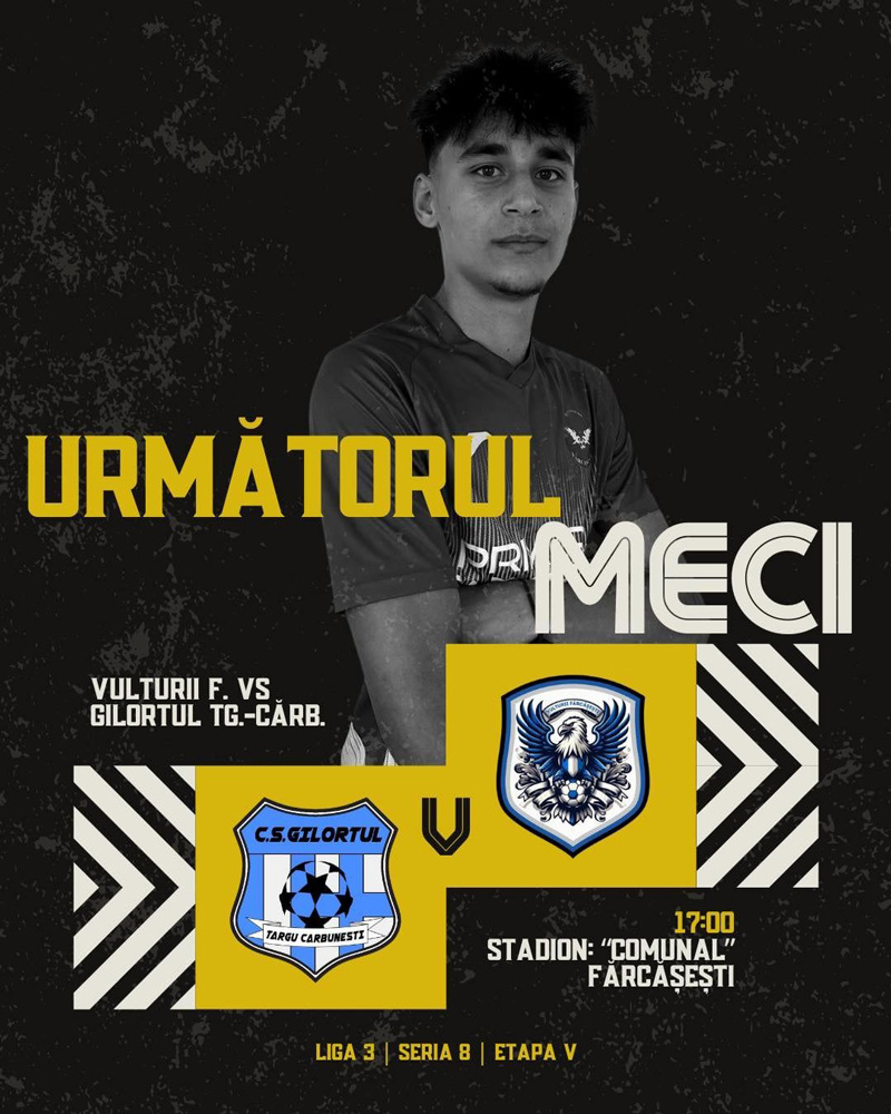Septembrie 27, ora 17:00 CS Vulturii Fărcăşeşti – CS Gilortul Târgu Cărbuneşti