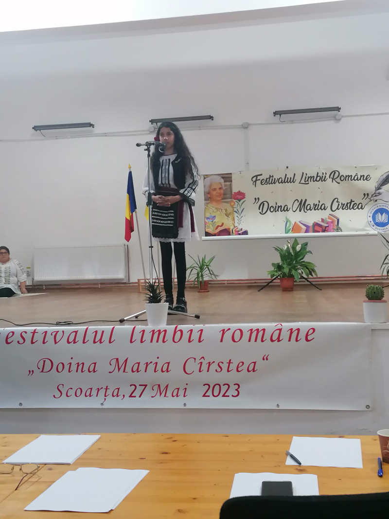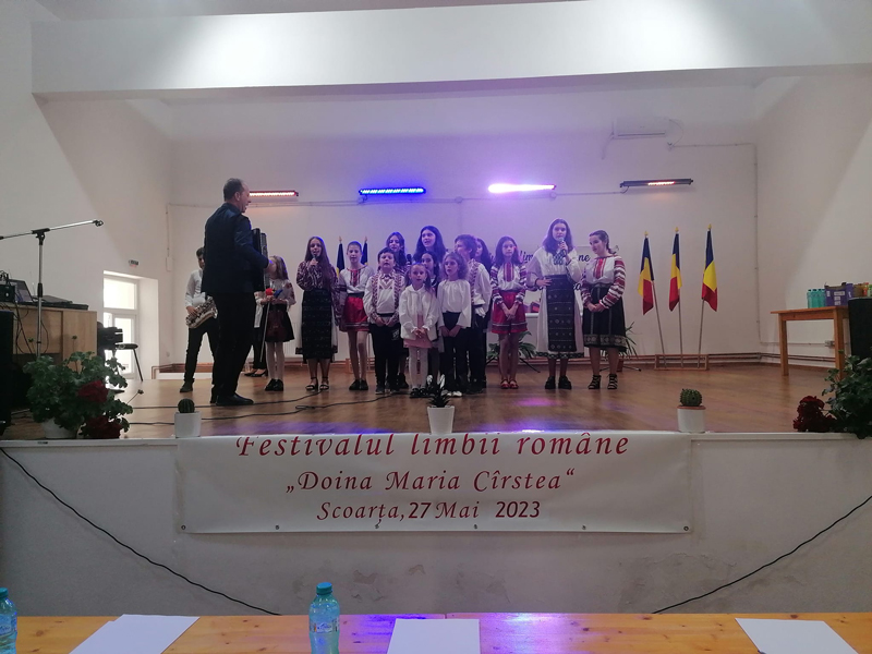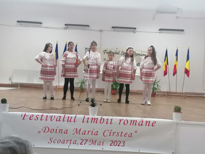 Ediția cu numărul patru a Festivalului Limbii Române ,,Doina Maria Cîrstea”, organizat sâmbătă, la Scoarța, a adus pe scena Casei de Cultură ,,Pompiliu Marcea” din localitate câteva zeci de elevi de clasele III-VIII de la patru unități de învățământ din județ. Elevii de la școlile gimnaziale din Scoarța, Ciuperceni, Albeni și de la Liceul Tehnologic Roșia Jiu au recitat poezii, au cântat, au susținut probe de gramatică și de caligrafie. Asta în fata unui public numeros, sala de spectacol a căminului cultural fiind plină, și a unui juriu format din poeți și profesori de limba română.
