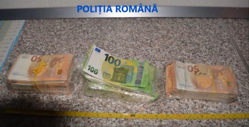 Zeci de mii de euro falși, găsiți de polițiștii din Gorj în casa unui tânăr din Arad