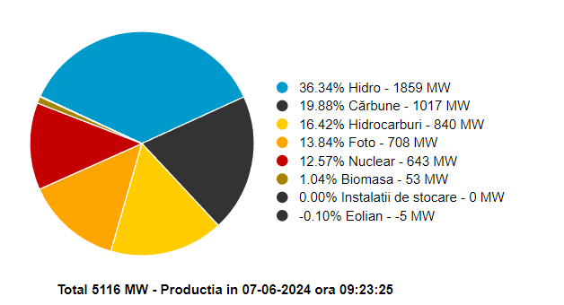 Eolienele nu produc nici la această oră, mai multe de 5 MW.