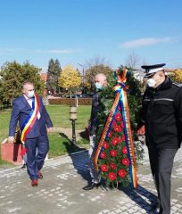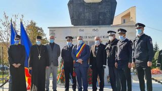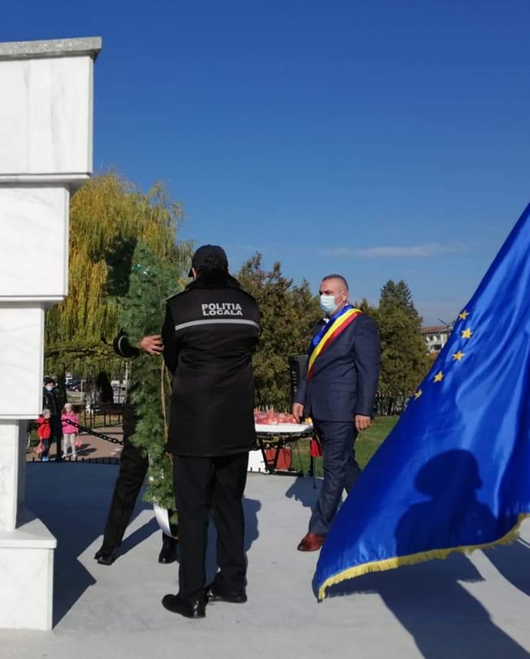 La Monumentul Eroilor, recent reabilitat, s-au depus coroane de flori, iar edificiul a fost resfințit de un sobor de preoți.