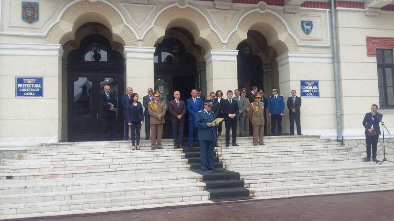 Ninel Muja, vicepreședintele Consiliului Județean Gorj, a amintit și el importanța acestei zile: “În fiecare an, ziua de 9 mai aduce recunoașterea laolaltă a trei evenimente edificatoare pentru istoria națiunii române. (…) Astăzi se împlinesc 10 ani de când România a aderat la Uniunea Europeană. În anul 2007 a avut loc un act istoric, pe care ni l-am dorit ca stat: acela de a face parte din sistemul de valori al marii familii europene”.
